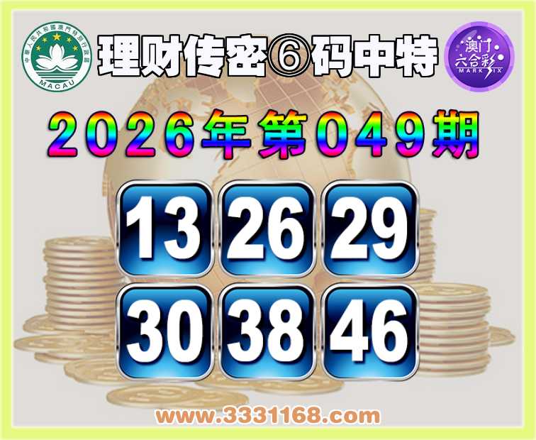 049期:〖理财传密〗 😳⑥码中特😳【13.26.29.30.38.46】开:13准上榜高手